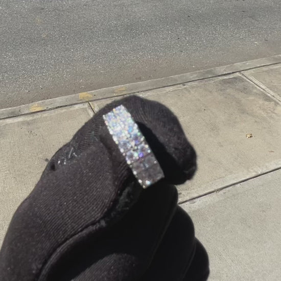 Each stone is about 3MM each and the ring is about 6.5MM Wide